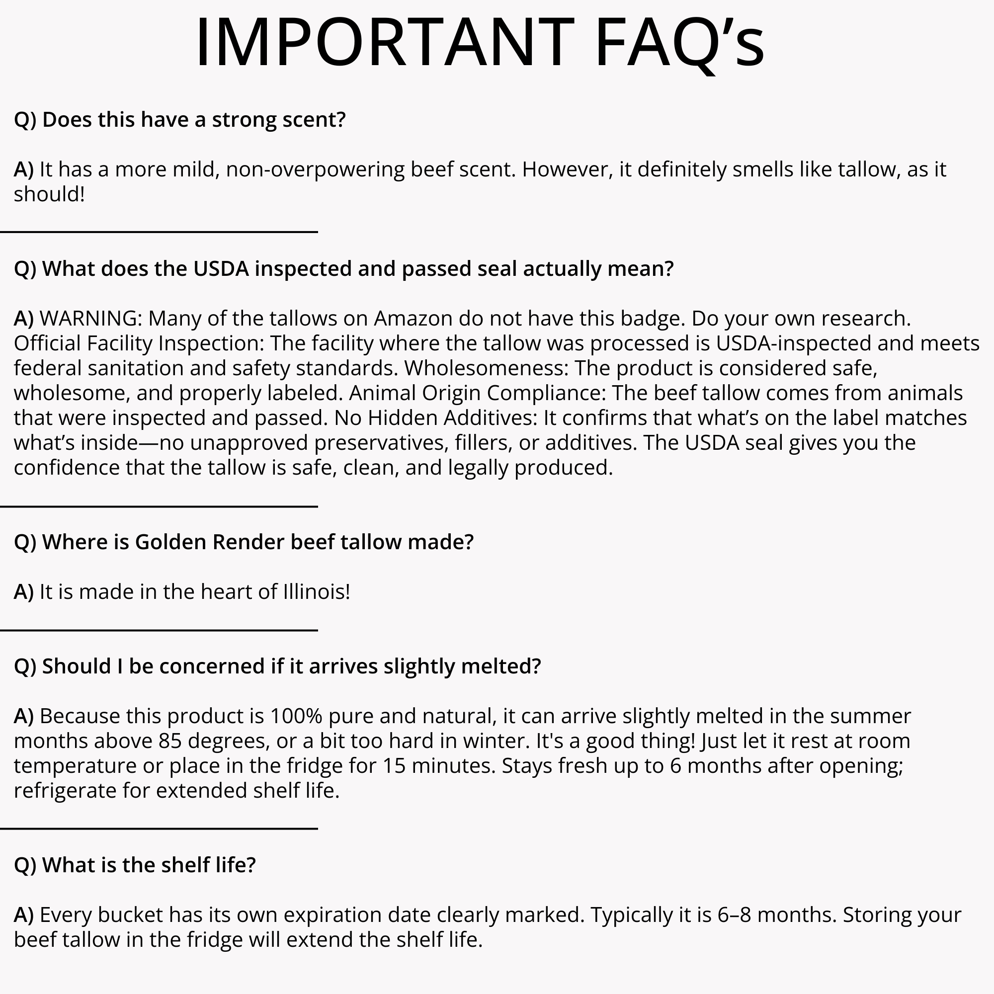 Animal Origin Compliance: The beef tallow comes from animals that were inspected and passed. No Hidden Additives: It confirms that what’s on the label matches what’s inside—no unapproved preservatives, fillers, or additives.